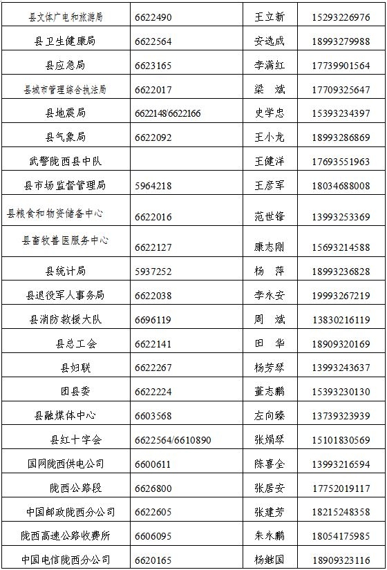 参加单位:县工信局、县民政局、县财政局、县自然资源局、市生态环境局陇西分局、县住建局、县交通运输局、县农业农村局、县水务局、县商务局、县应急局、县城市管理综合执法局、县文体广电和旅游局、财保陇西分公司、人保陇西分公司、国网陇西供电公司、中国电信陇西分公司、中国移动陇西分公司、中国联通陇西分公司。