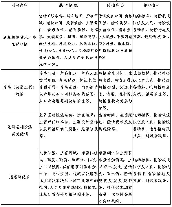 速报内容主要包括:地质灾害发生时间、地点、伤亡人数、初判经济损失、可能的诱发因素和发展趋势及先期处置情况等。