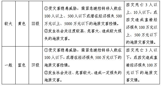 一般地震灾害:造成10人以下死亡(含失踪)的地震灾害,重要地区发生4.5以上、5.0级以下地震,初判为一般地震灾害。