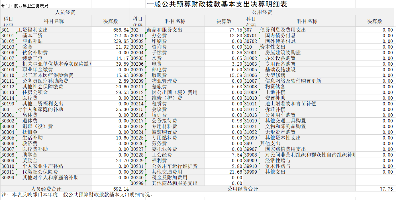 2022年度一般公共预算财政拨款基本支出769.89万元。其中:人员经费692.14万元,较上年决算数增长44.60万元,下降11.93%,主要原因是人员增加与人员经费增加。人员经费用途主要包括基本工资272.35万元、津贴补贴239.85万元、奖金21.92万元、绩效工资14.17万元、基本养老保险缴费39.59万元、医疗保险缴费15.93万元、公务员医疗补助缴费2.89万元、其他社会保障缴费20.60万元、住房公积金29.53万元、对个人与家庭的补助35.30万元。公用经费77.75万元,较上年决算数增加6.55万元,增长9.19%,主要原因是单位人员的增加。公用经费用途主要包括办公费12.83万元、手续费0.36万元、水费0.65万元、电费3.20万元、邮电费6.50万元、取暖费15.59万元、差旅费5.63万元、公务接待费0.98万元、工会经费7.54万元、公务用车运行维护费2.80万元、其他交通费用21.66万元。