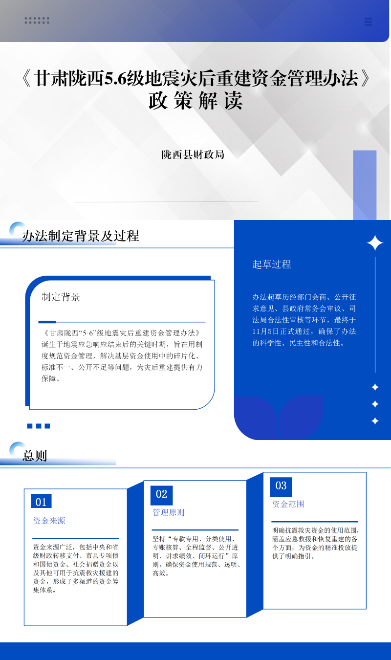 《陇西县人民政府办公室关于印发甘肃陇西5.6级地震灾后重建资金管理办法的通知》政策解读