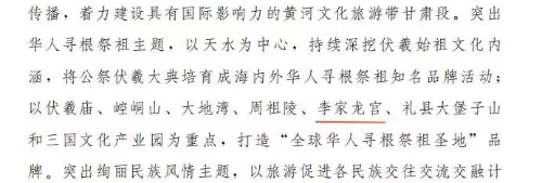 2025年3月13日,一则振奋人心的消息传来。《甘肃省人民政府办公厅关于印发甘肃省打造全国重要的文化传承创新基地和具有国际国内影响力的优秀旅游目的地行动方案的通知》(甘政办发〔2025〕21号)明确提出,以李家龙宫等为重点,全力打造“全球华人寻根祭祖圣地”品牌,向着具有国际国内影响力的优秀旅游目的地大步迈进,这无疑为陇西的经济社会发展按下了加速键。