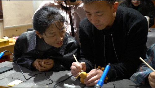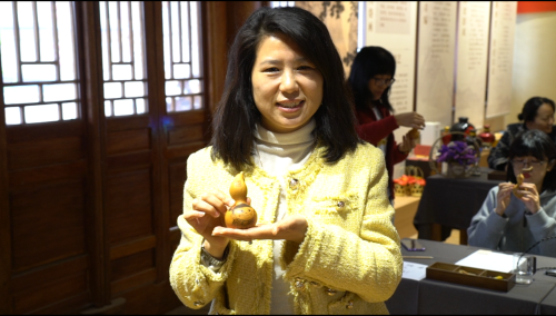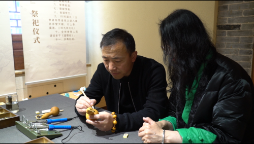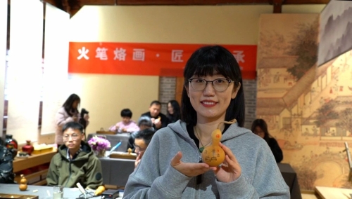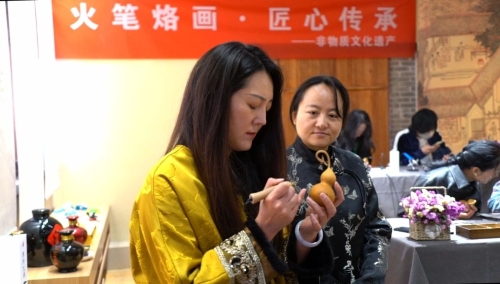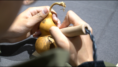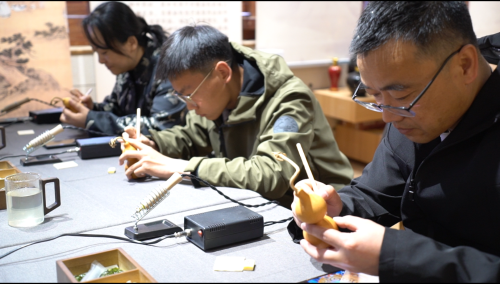 韩红武以“烙铁代笔、高温代墨”,现场演示如何在葫芦上勾勒出深浅不一的烙痕。他讲到:“葫芦烙画需结合中国画的白描技法,每一笔的温度控制都关乎作品的立体感。”参与者从描线、控温到晕染,亲身体验了这项“火的艺术”。