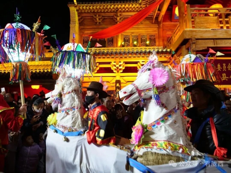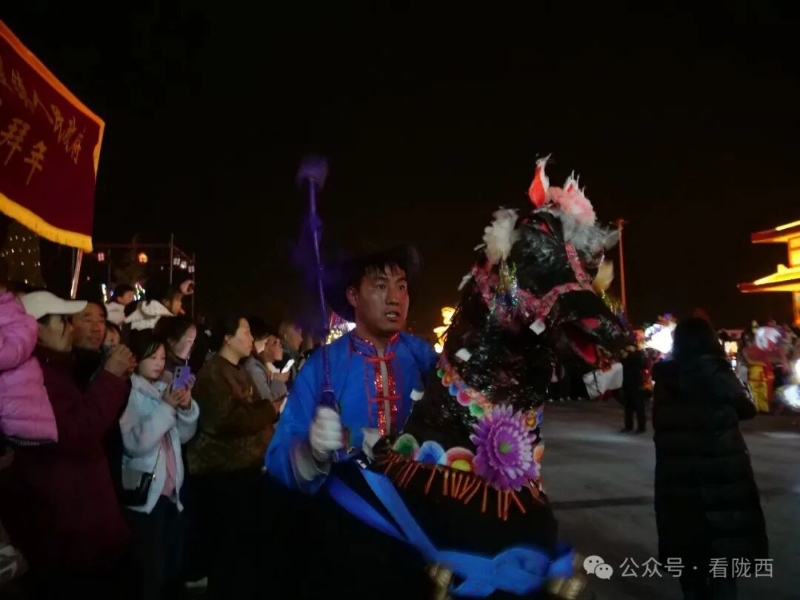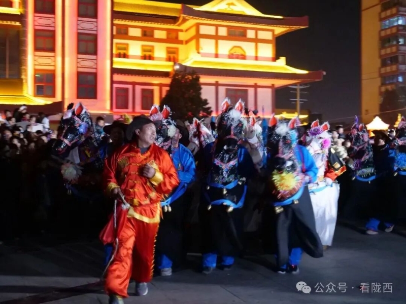 陇西县福星镇纸马秧歌,是陇西乡土年味里最鲜活的非遗民俗。纸马以竹篾扎骨、彩纸裱糊,造型精巧,舞者将纸马系于腰间,提马起舞,步法矫健灵动。表演时队形变换有序,或列队前行、或绕场奔腾,伴着锣鼓铿锵与马铃清脆,气势热烈奔放。它融舞蹈、音乐、民俗信仰于一体,是福星镇独有的传统社火瑰宝,承载着乡亲们祈福纳祥、欢庆新春的美好心愿,每一场演出都尽显黄土高原的质朴豪情与文化根脉。