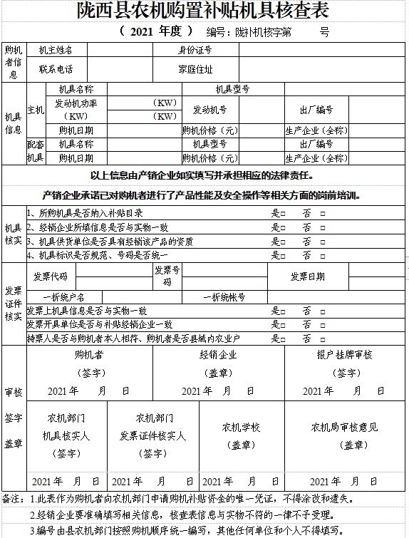 4.农商银行陇西支行:负责通过“一折统”或银行账号及时准确兑付农机购置补贴资金。