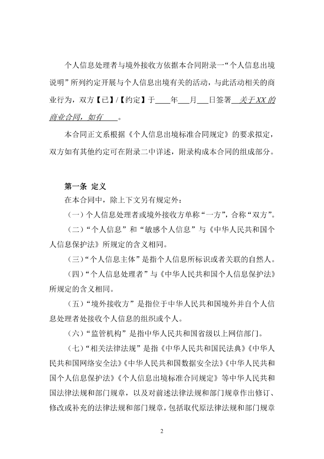 附件:个人信息出境标准合同规定(征求意见稿)