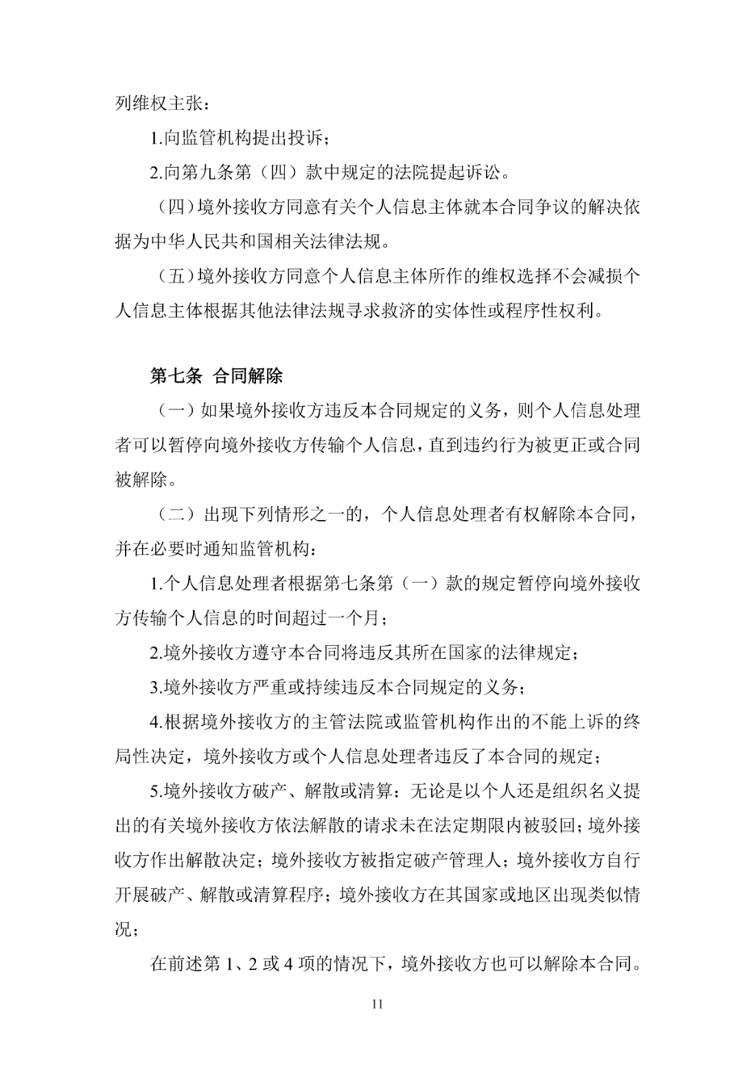 第十一条 省级以上网信部门发现通过签订标准合同的个人信息出境活动在实际处理过程中不再符合个人信息出境安全管理要求的,应当书面通知个人信息处理者终止个人信息出境活动。个人信息处理者应当在收到通知后立即终止个人信息出境活动。