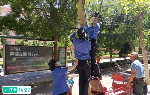 执法人员借助厢式执法车辆、智能线缆附挂机等工具,对低垂、散落线缆进行集中捆扎整理,对存在隐患的电缆进行包扎消缺。出动执法人员230余人次,执法车辆30余台次,完成点位线缆捆扎90余处。
