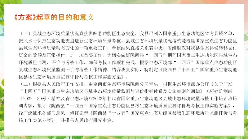 《陇西县“十四五”国家重点生态功能区县域生态环境质量监测评价与考核工作实施方案》政策解读