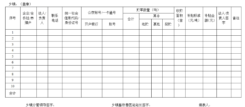 17个乡畜牧站:在各乡镇的统一领导下,主要完成各实施主体前期的相关资料,实施主体的贮草计划,日常调度、各类报表搜集上报、宣传、技术培训、各类资料的审核上报等工作。