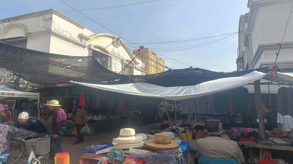 在小百货市场南路,一些经营户私自搭设伞棚,有用竹竿支撑的、有用绳子拉扯的,大小、颜色、布料、新旧各不相同,纵横交错、杂乱无章,形成极不规则的“蜘蛛网”,不仅影响市场的整体形象,还存在着巨大的安全隐患。为改善市场容貌,切实优化营商环境,市场执法大队持续开展了“蜘蛛网”整治工作。