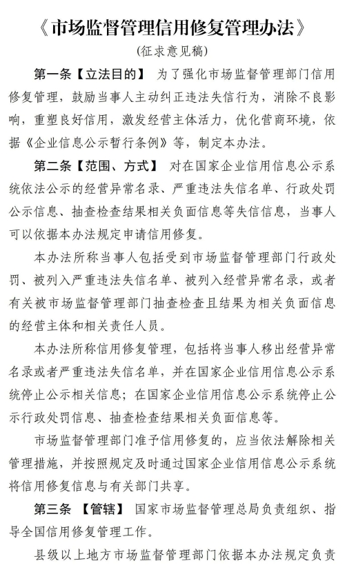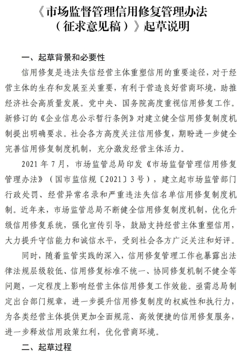 2.《市场监督管理信用修复管理办法(征求意见稿)》起草说明