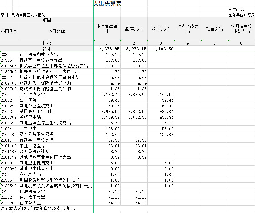 2023年度支出合计4376.65万元,其中:基本支出3273.15万元,占74.79%;项目支出1103.50万元,占25.21%;上缴上级支出0.00万元,占0.00%;经营支出0.00万元,占0.00%;对附属单位补助支出0.00万元,占0.00%。