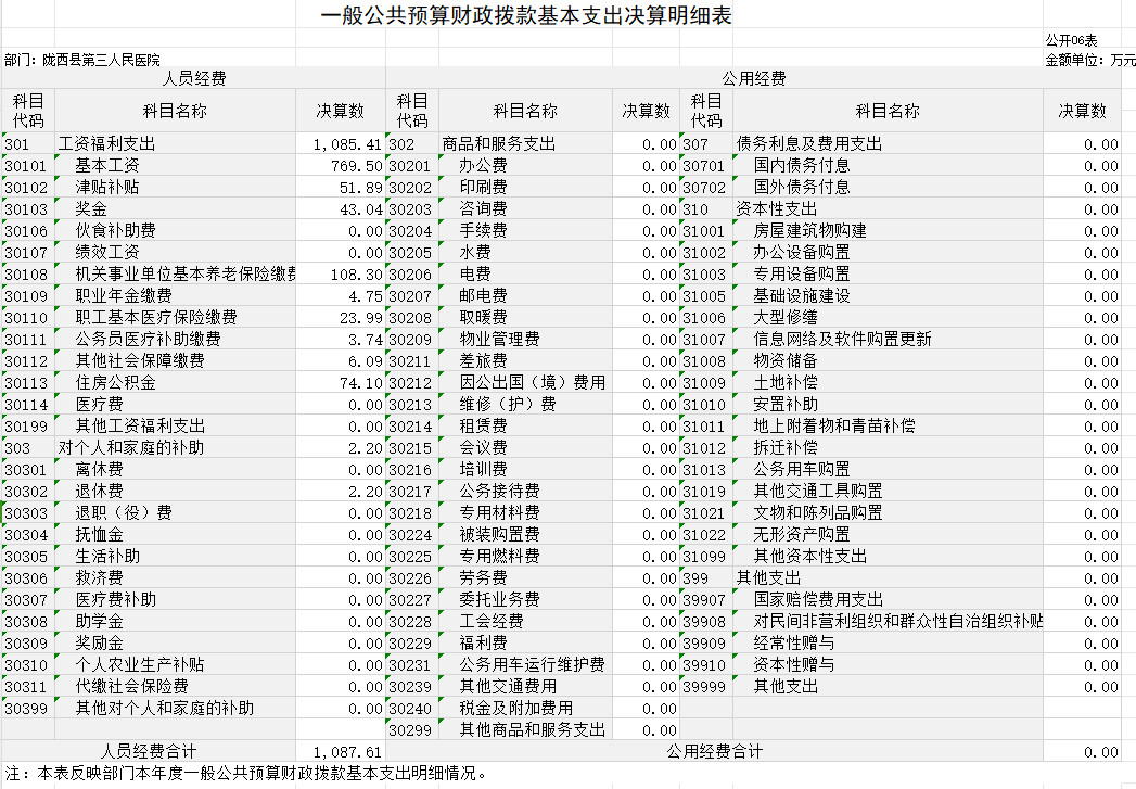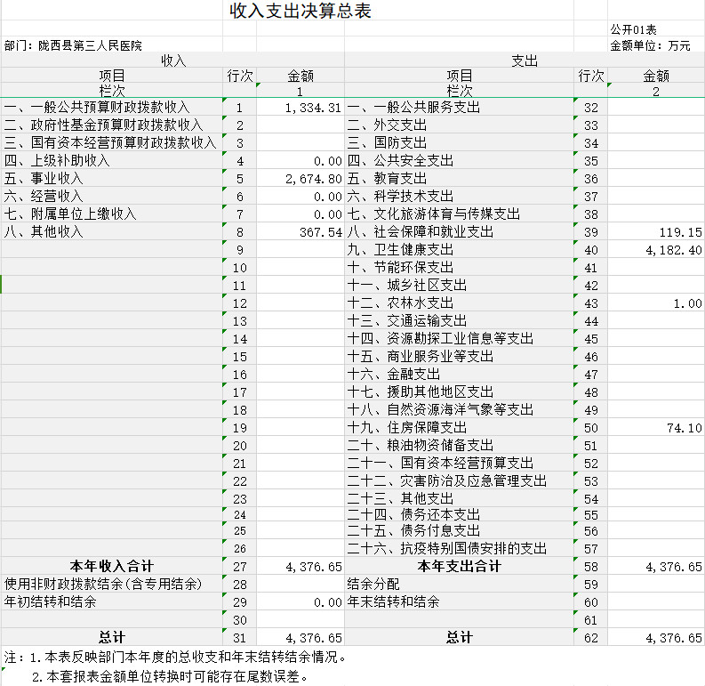 由于决算公开表格中金额数值应当保留两位小数,公开数据为四舍五入计算结果,个别数据合计项与分项之和存在小数点后差额,特此说明。