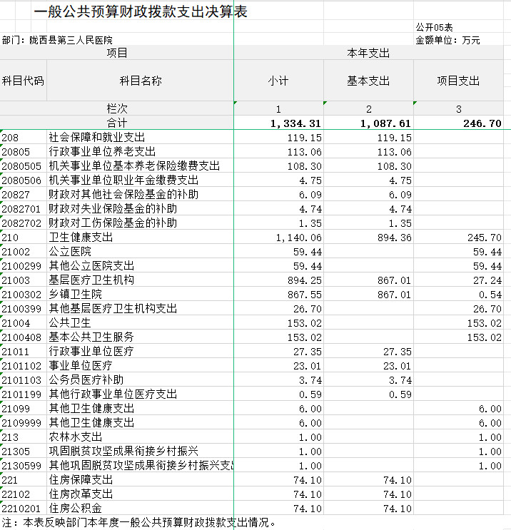 2023年度一般公共预算财政拨款支出1334.31万元,较上年决算数增加111.6万元,增长9.13%。主要原因是项目重大传染病防控资金增加,为上级专项资金。